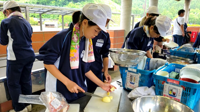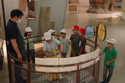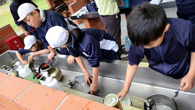 原料となる「こうぞ」を子ども達が伐採した後、釜で柔らかく煮ていきます。