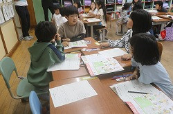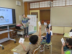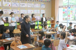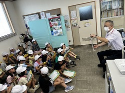図書館の司書の方にお話を聞いた後、自分たちで読みたい本を探し、自分で貸し出しの手続きを行いました。待っている間は、読み聞かせをしていただき楽しい時間を過ごしました。子どもたちが考えた質問にも答えていただき、図書館のひみつをたくさん知ることができました。まだまだ、図書館のことを知りたい子どもたちが多いようです。