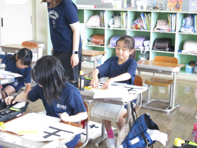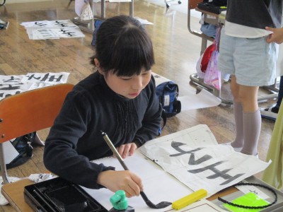 5年生は、書きぞめの練習をしてました。課題をよく見て、正しい文字が書けるよう一生懸命練習する姿は、さすが高学年といった様子でした。最高の一枚を期待しています。