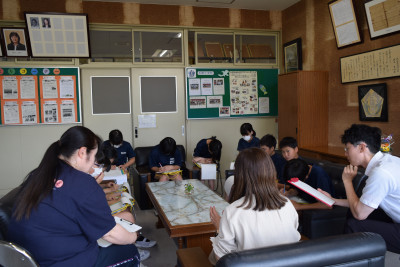 3年生は、国語でかるたの読み札を作る学習をしていました。同じ漢字の音読みと訓読みを上手に取り入れて文章を考えることは難しいのでは?と思いましたが、辞書を上手に使い楽しそうに学習していました。