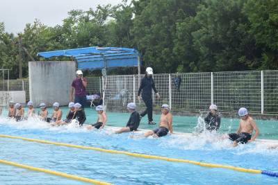 消火器や学校備え付けの消火栓がいつでも使えるよう、消火器や消火栓を実際に使って消火訓練も行いました。どの児童もしっかり消火することができました。