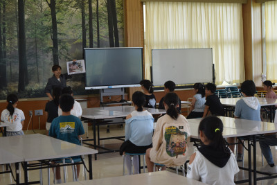 4年生は、五箇用水について地域の方にお話を伺いました。五箇用水を作ろうと尽力してくださった尾股銀蔵さんのことを教えていただくことで、自分たちの地域がなぜ米作りが盛んなのかを知ることができました。