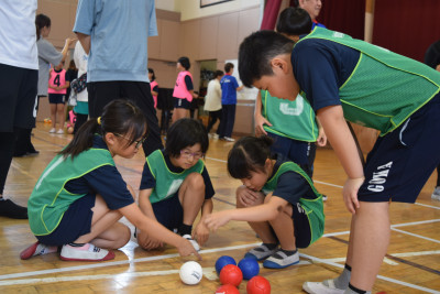 6年生は、国語の学習で、「1年生と楽しく遊ぶにはどんな工夫をすればよいのか」という話し合い活動を行い、話し合ったことをもとに、実際に1年生と遊ぶ時間を設けてくれました。6年生のお兄さんやお姉さんに手をつないでもらって、みんなとても嬉しそうでした。