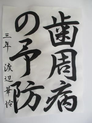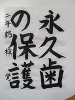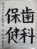 2020年6月4日 08時50分今日は6月4日、6(ム)と4(シ)の語呂に合わせて「虫歯予防Day」です。また、今日から歯と口の健康週間が始まります(~6/10)。東中学校では歯科衛生に努めようと、ポスターと書道作品に取り組んでいます。今年度は福島県学校歯科保健優良校表彰において努力賞を受賞しました。書道、ポスターともに力作が集まったので紹介したいと思います!