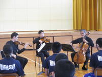 2021年6月25日 18時55分「音楽のアウトリーチプレゼント」として、NHK交響楽団の弦楽器奏者の3名が演奏を披露してくださいました。約1時間という短い時間ではありましたが、ヴァイオリン、ヴィオラ、チェロの美しい響きに、生徒・先生方ともうっとりと聴き惚れてしましました。