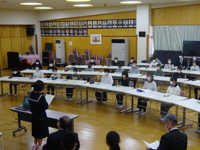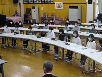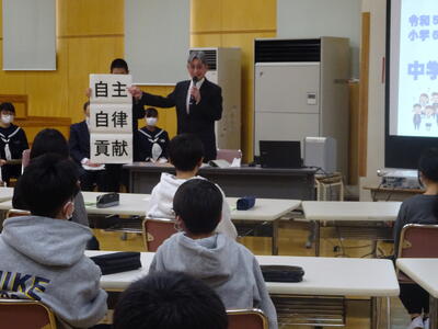 2024年2月1日 16時43分6年生が東中学校での体験入学に参加しました。中学校の校長先生からは「自主」「自律」「貢献」のお話がありました。授業参観では先輩たちが頑張っていましたね。