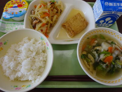 2024年1月11日 12時42分今日の給食です。1年生が収穫した〇〇〇〇〇が使われていますよ。わかるかな?