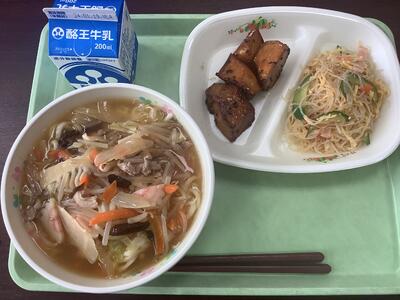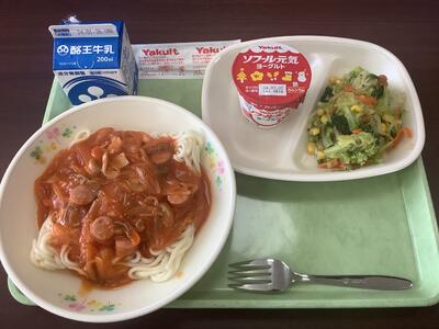 2024年1月18日 12時56分今日の給食です。ナポリタンを上手に食べられたかな?