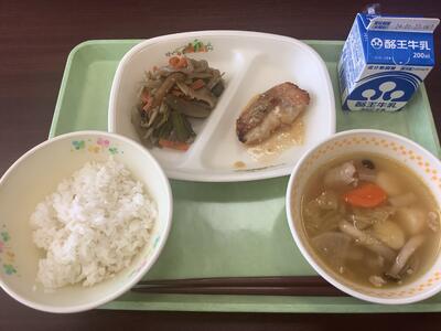 2024年1月16日 15時10分今日の給食です。1年生が収穫したサツマイモが使われていましたよ。どれに使われていたかな?