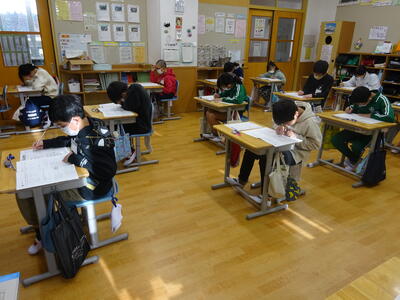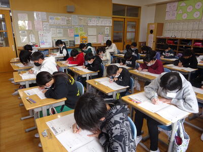 2024年1月18日 15時28分学力調査の問題に取り組みました。さすが釜小の子どもたち!