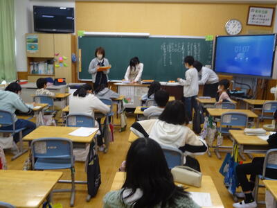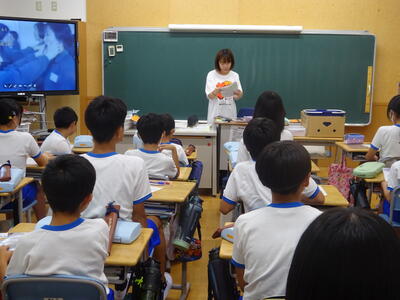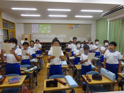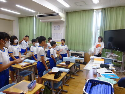 2023年8月25日 14時23分5年生の子ども達は6年生担任の先生による体育の授業、6年生の子ども達は5年生担任による音楽の授業です。それぞれの先生の得意な教科による授業です。これからの小学校はこのような形が増えていきます。