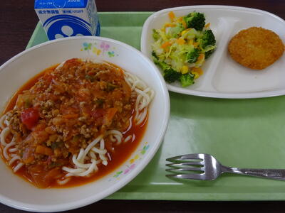 2023年4月27日 17時33分今日の給食です。みんなは上手に食べられたかな?私は恐る恐る数本ずつ食べました!