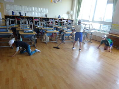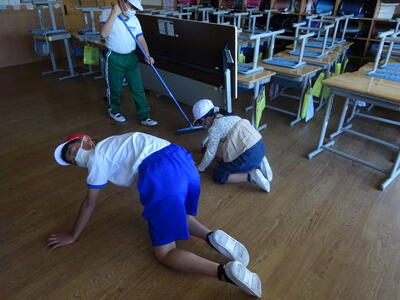 2023年4月28日 13時57分釜子小自慢の清掃風景です。みんな真剣に取り組んでいます。