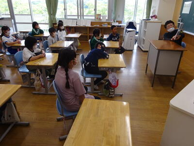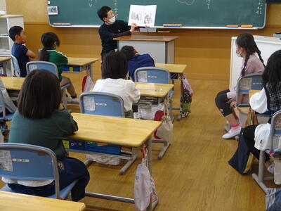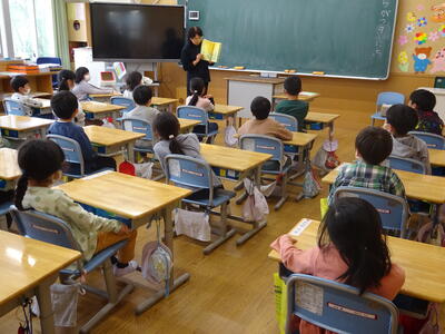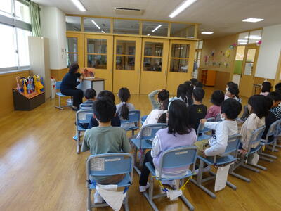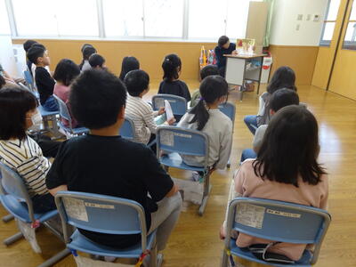 2023年5月9日 13時05分1・2・3年生の「読み聞かせ」です。どんなお話を聞いたのでしょうか。