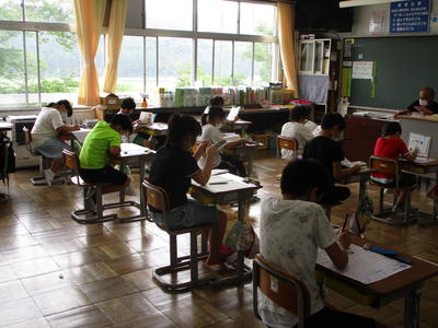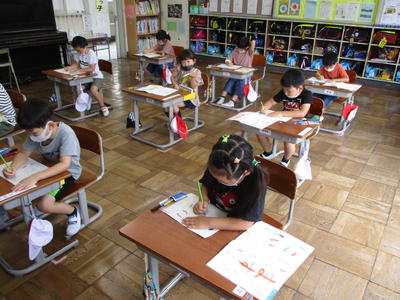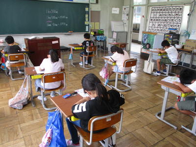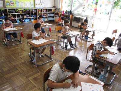 2020年7月15日 14時30分 2年生の教室に行くと、算数で「時間」の学習のまとめをしていました。