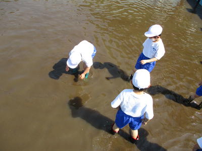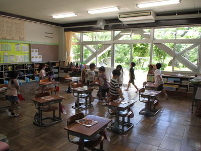 教室の床に、すごくきれいな模様ができああがりました。