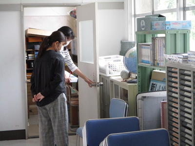 今日は、学校再開後に効率よく、かつ効果的に授業や行事を行うために、学校にある学習教材や教具の再確認と施設の点検・清掃を全職員で行いました。また、あわせて教材・教具の効果的な使い方のミニ研修会を行いました。
