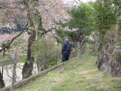 【用務員さんは、きれいな環境で子どもたちを迎えられるように、草刈りをしてくれています】