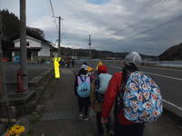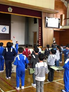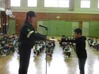 大信駐在所の吉田さんをお招きして、交通安全教室を行いました。まず、児童代表の6年生に家庭の交通安全推進委員の委嘱状を交付した後、交通事故に関するお話を聞きました。教室の後は、一斉下校となり、歩き方についても見ていただきました。
