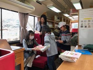 一年間に10回、大信図書館が移動図書館として、学校に来ます。きょうは、今年度初めての移動図書館。楽しみにしていた子ども達は、きょうもたくさんの本を借りることができました。