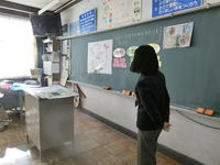 3年生は、「かむこと」についての学習。授業の最後に、一人一人がかむことに関するめあてを立てました。翌日の給食には、めあてのとおりに食事ができているか、再度、来校して3年生と一緒に給食を食べていただきました。