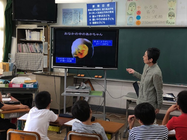 吉岡先生をお招きしての「いのちの授業」。今回は、5年生を対象に行いました。生命の誕生について学んでいる児童は真剣な眼差しでしっかりとお話を聞いたり、発表したりしていました。授業後は、「赤ちゃん人形」をやさしく抱く姿が見られました。