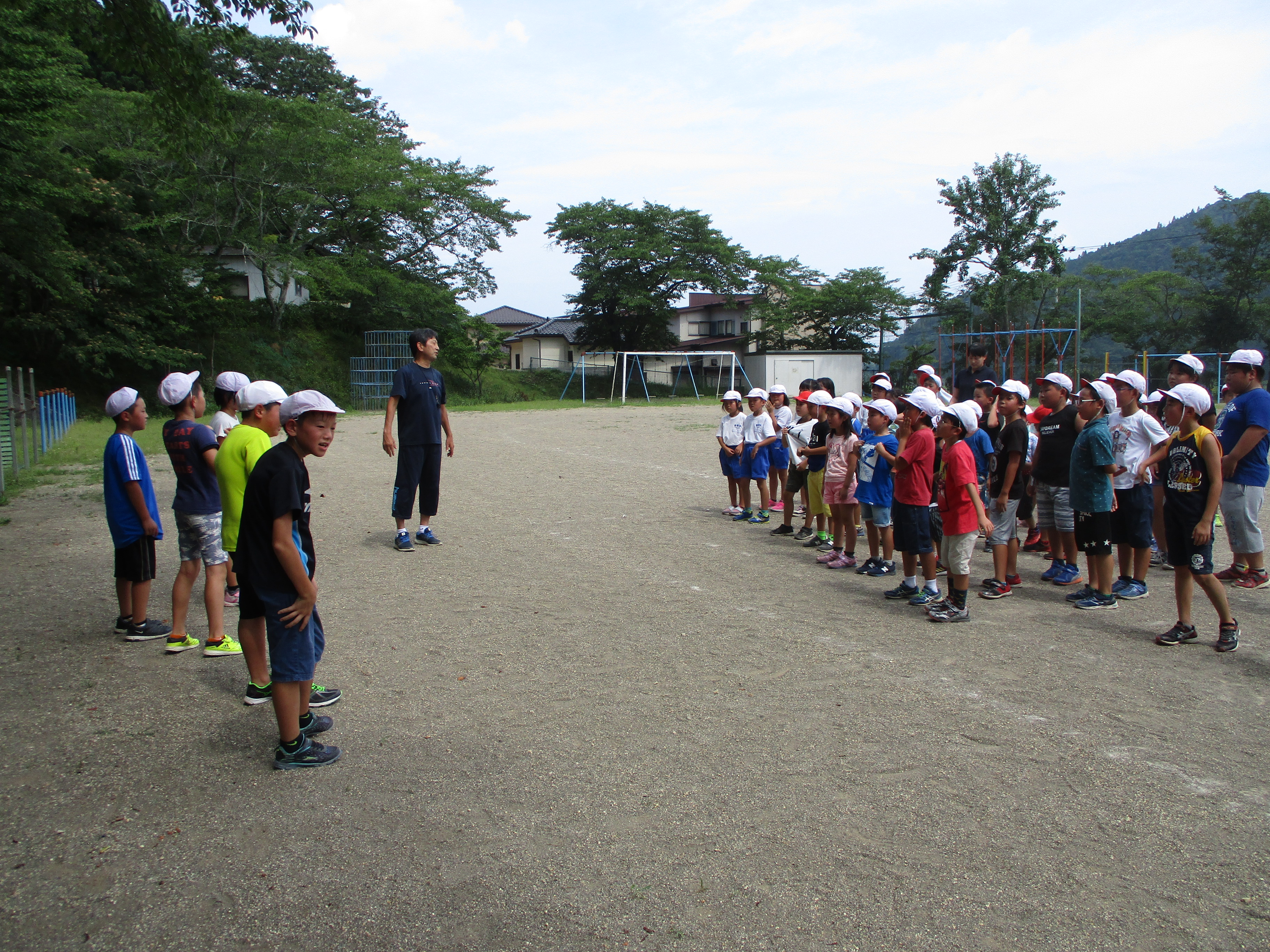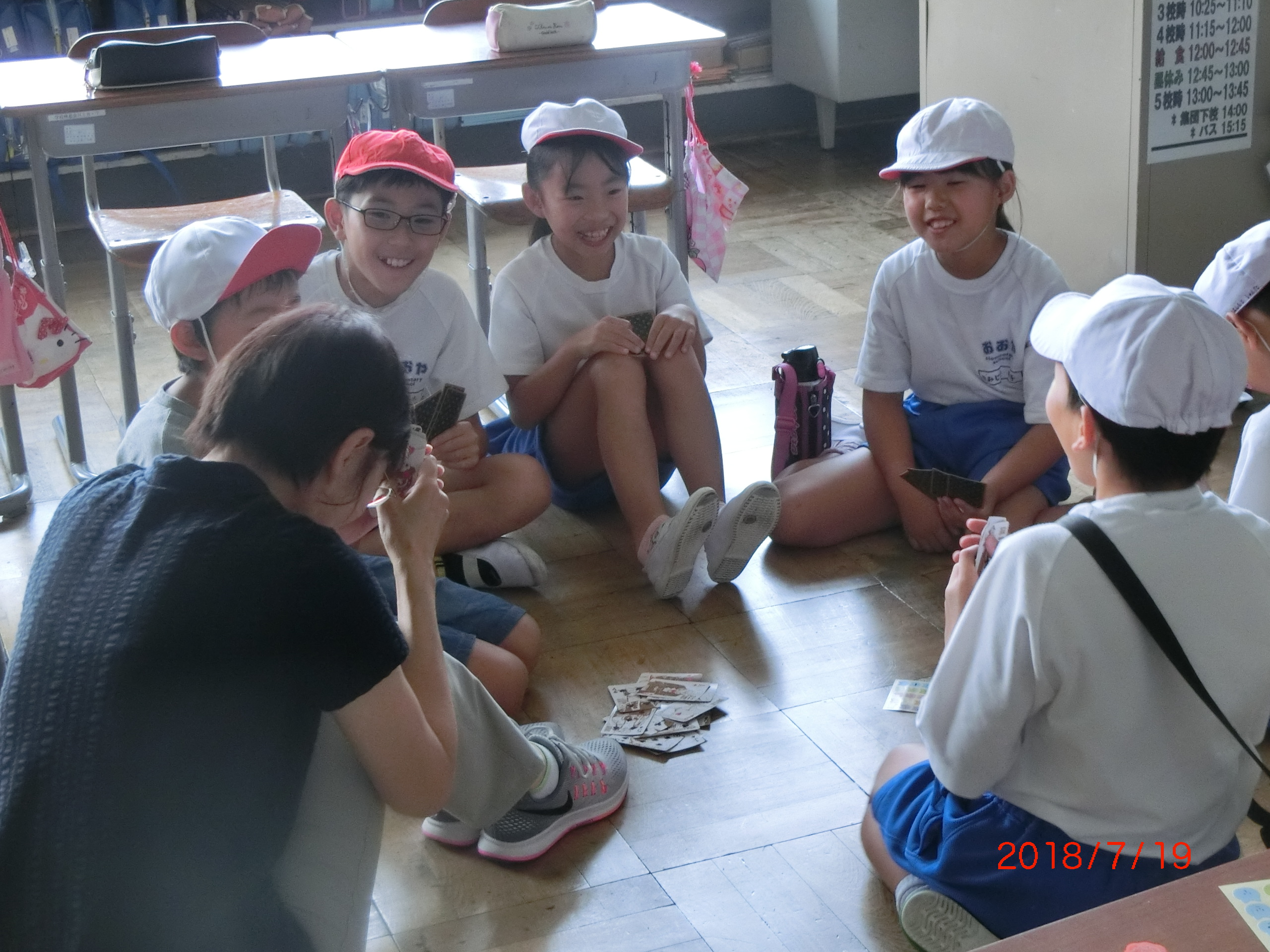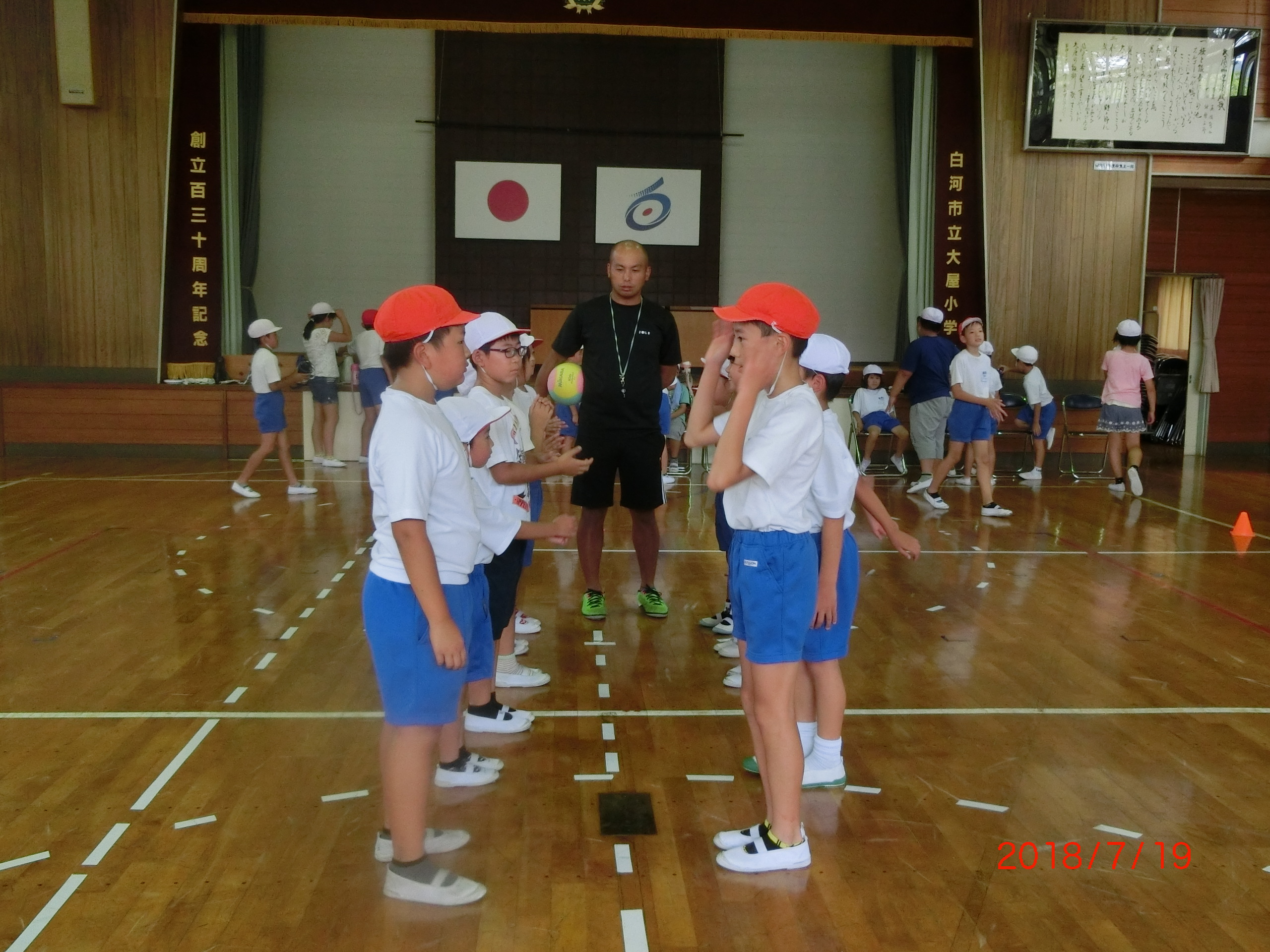 2018年7月19日 17時31分年に2回あるわくわくタイム。今日が、第1回目となり、縦割り班で遊びます。遊びの内容は、6年生が中心になって考え、今、児童に人気の遊び「ドッジボール」と「トランプ」などを行いました。「ドッジボール」では、1年生でも楽しめる特別ルールがあり、遊びの中に「思いやり」があふれるものとなり、楽しい時間はあっという間に過ぎました。