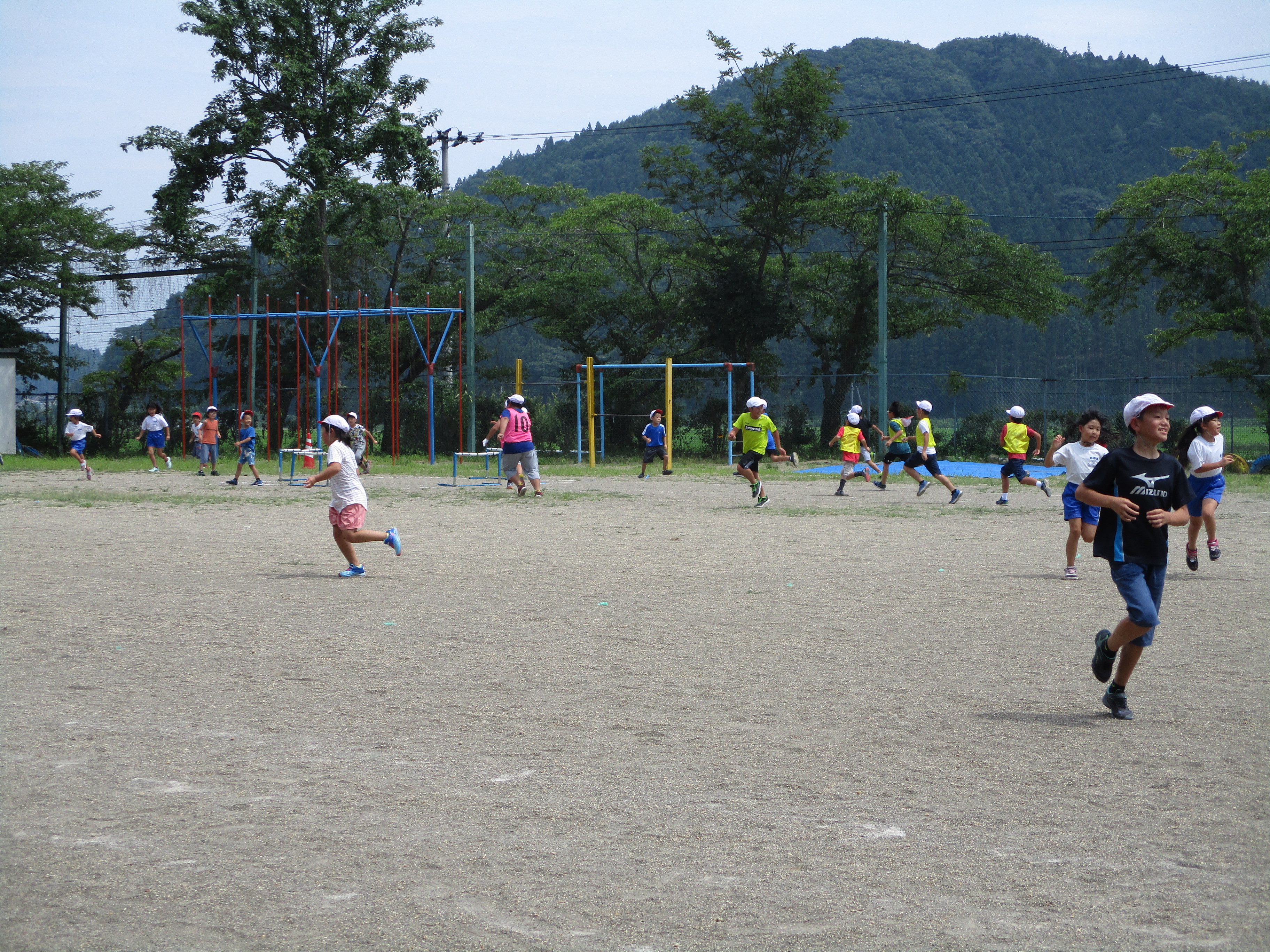 昼休みは、生活・集会委員の企画で、お楽しみ集会を開きました。内容は「どろけい」。約30分の会ですが、全校児童が楽しく遊びました。