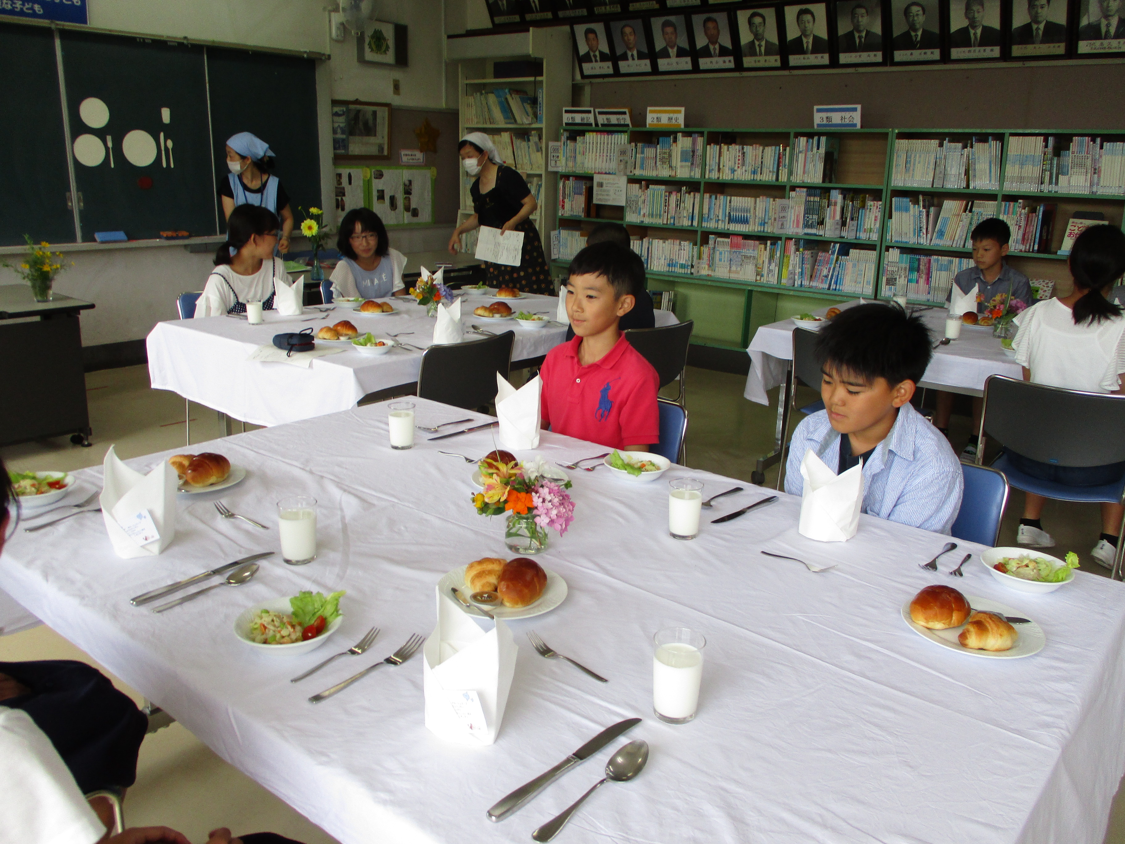 2018年7月10日 16時46分6年生は、今日の給食でテーブルマナーの体験しました。テーブルマナーの体験なので、もちろん特別メニューとなります。(通常の1食分の給食費ではまかなえないため、先日6年生が欠食した日の給食費を合わせて、一人当たり550円で準備していただきました。)