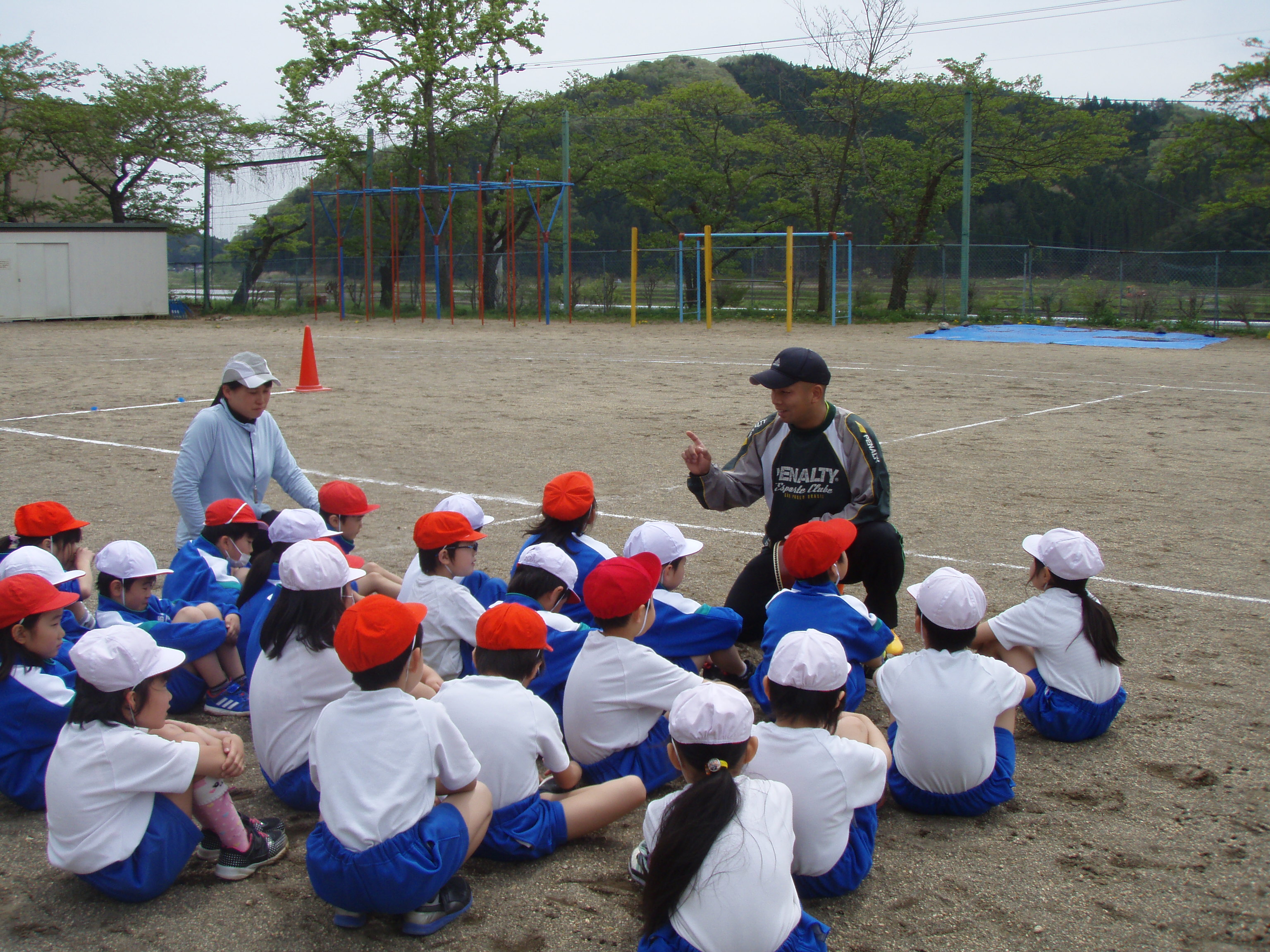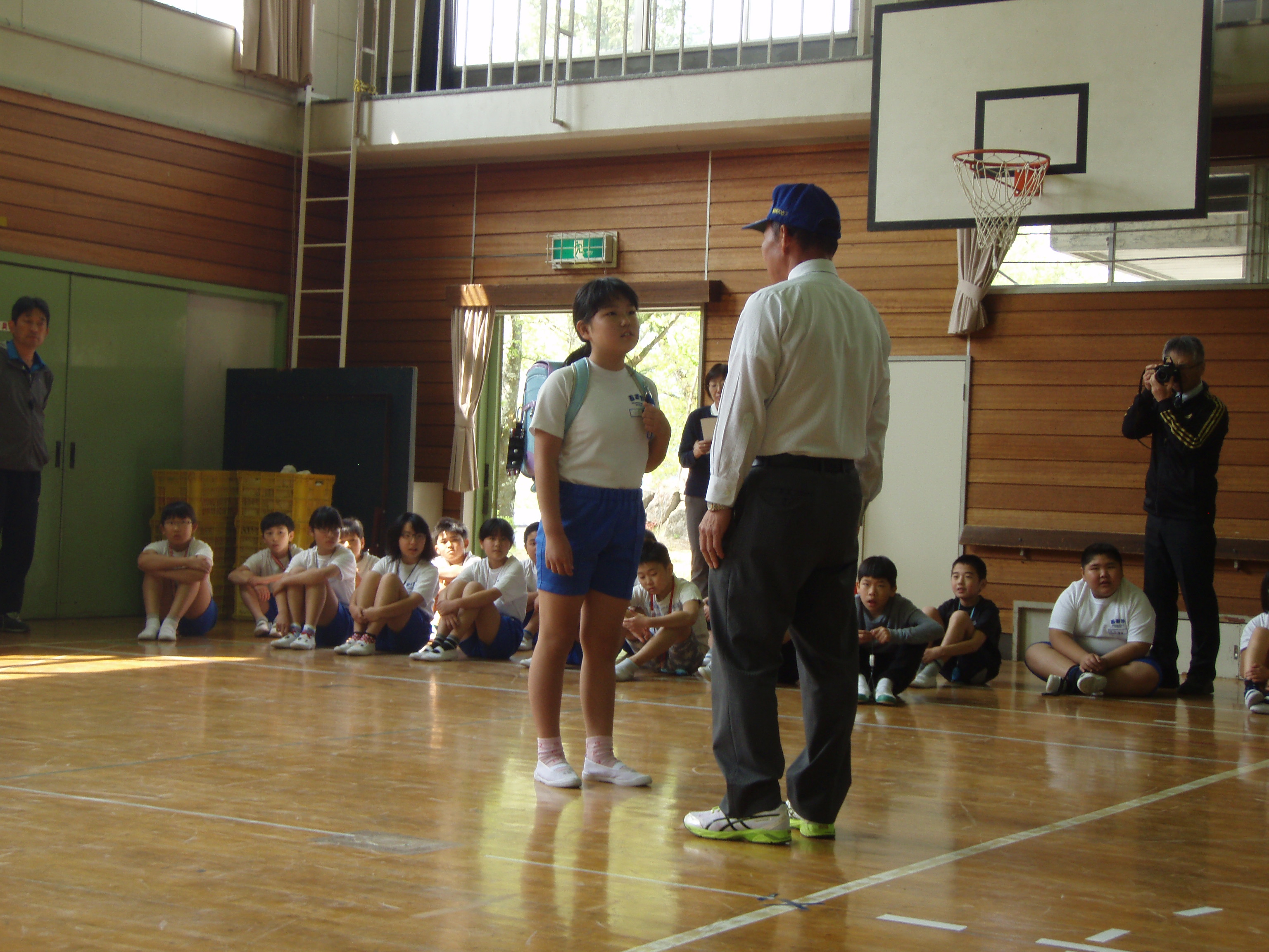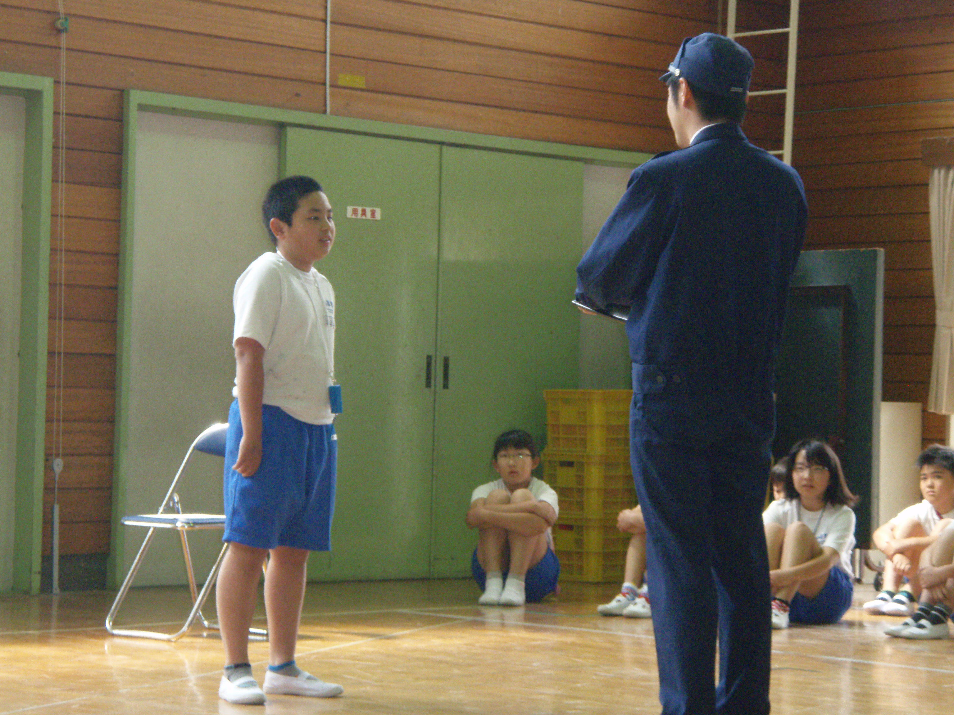 今日は自分の命は自分で守る学習の2回目となる「防犯教室」を開きました。教室の先生は、大信駐在所の警察官と白河市交通教育専門員でスクールサポーターのお二人です。今日は、知らない人に声をかけられたときの逃げ方や家で一人の時に知らない人が来た時の対応の仕方について、お二人のご指導をいただきました。知らない人に手をつかまれたとき、声が出なかったり、防犯ブザーを鳴らすことができなかったりと、予想以上に対応が難しかったようです。残りの連休も、事故なく楽しい休みになるよう、ご家庭でも不審者に対するご指導をお願いします。