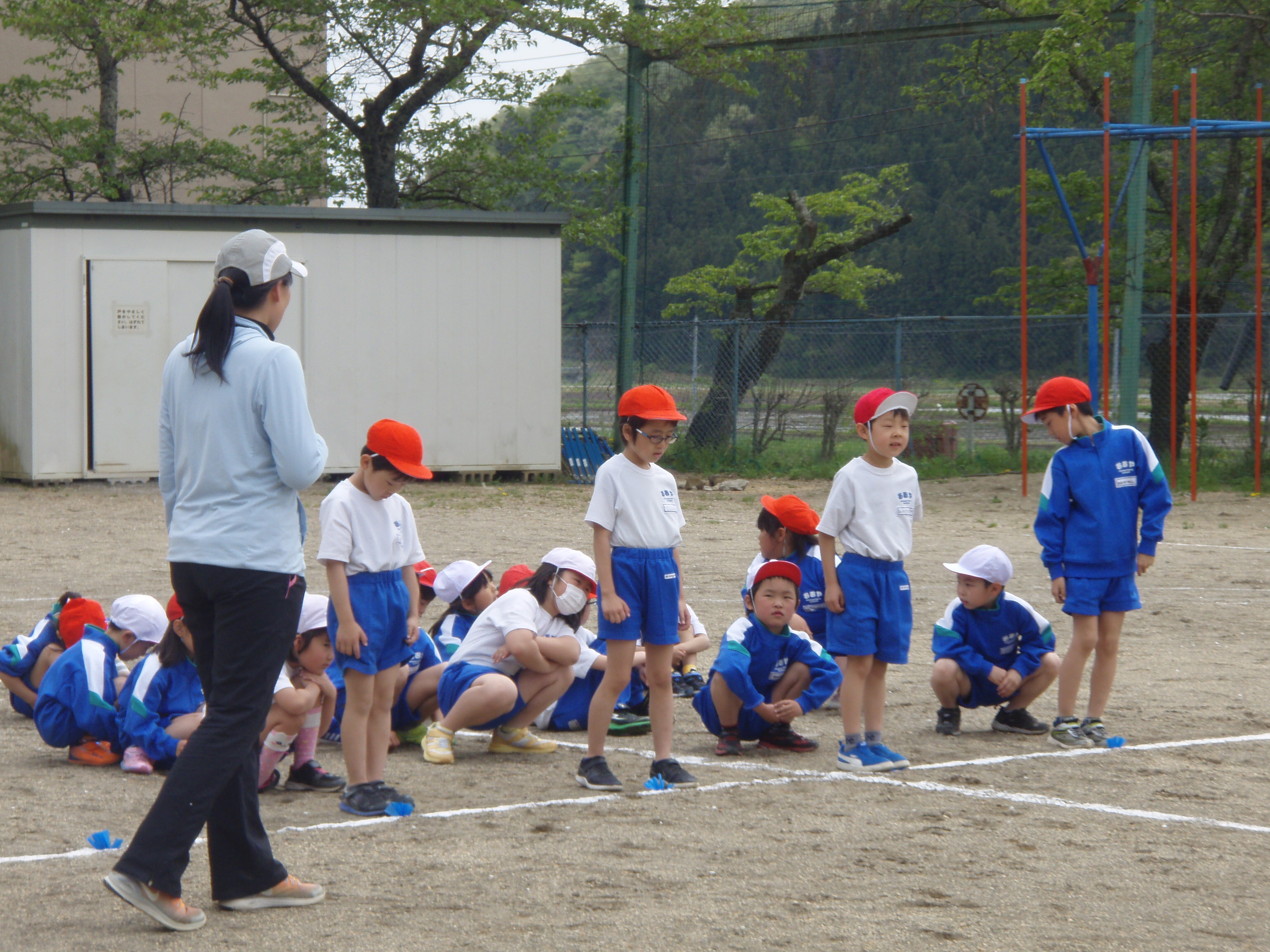 運動会を前にして、1,2年生は徒競走の練習を行いました。当日は、1年生が50m、2年生が80mを走ります。