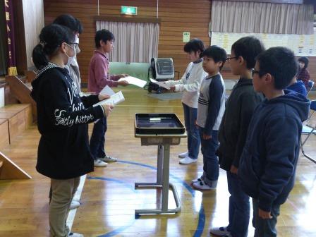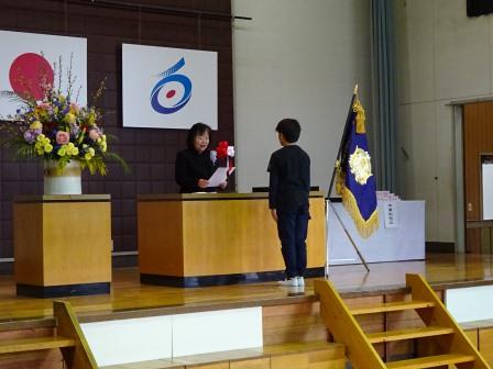 本日図書委員会が、年間の読書冊数の多い児童と、学級を表彰しました。一番多かった児童は66冊読みました。また、一番多かった学年は4年生で、平均40冊でした。