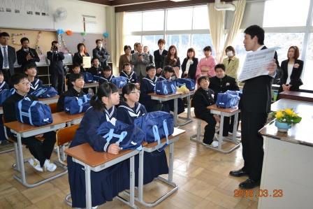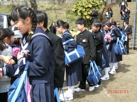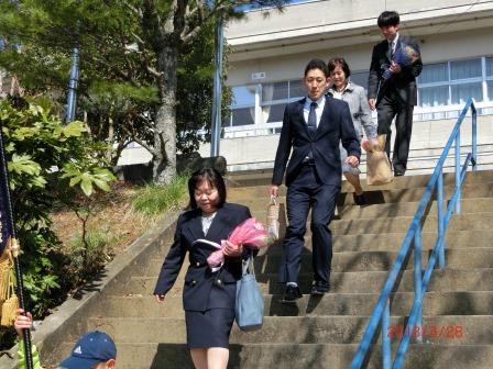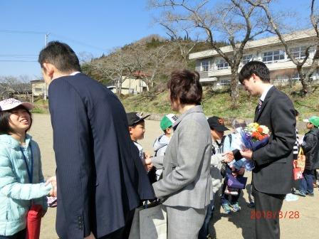 3月28日(水)離任式が行われました。4人の職員が異動します。子ども達と最後の別れを惜しんでいました。