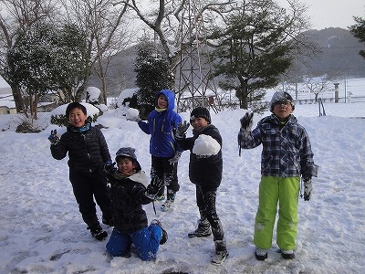 雪の中でも、子ども達は元気に雪遊びをしています。
