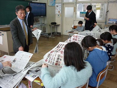 2018年1月29日 09時36分 1月26日(金)5年生が新聞について学習しました。福島民報社の方に新聞づくりについてのお話を聞きました。実際に自分だったらどんな見出しをつけるかなど、新聞づくりを通して、これからの学習に役立つ内容をたくさん学ぶことができました。