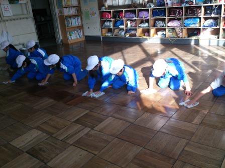 学期末の大掃除を行いました。どの学年も、教室の床を磨いたり、隅々まできれいに掃除をしました。気持ちよく新年が迎えられと思います。