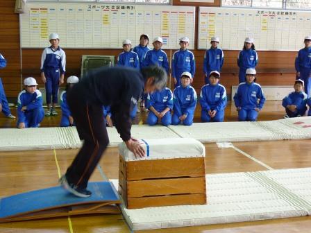 2017年12月19日 17時29分 12月18日(月)体育アドバイザーの岡部先生による跳び箱を使った授業が行われました。ケガをしないよう安全に気を付けながら跳び方のコツを学び、マットでの前転や、平均台を跳び越すなど、全身を使った運動に取り組みました。