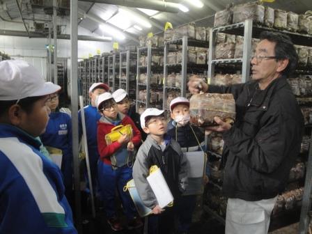 11月13日(月)3年生がきのこ農家を見学に行ってきました。シイタケの栽培の仕方や、出荷の準備など、農家の方からの説明を真剣に聞き、興味津々の様子でした。