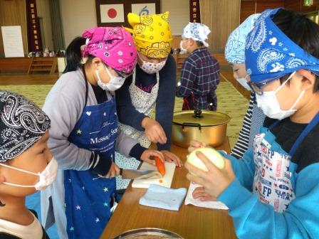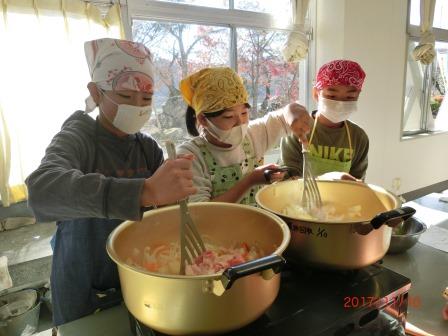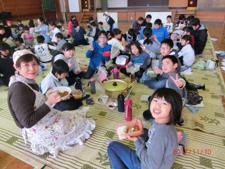 2017年11月10日 17時11分 本日わくわくタイムで、全校生でカレーを作りました。縦割り班で9つのグループに分かれ、6年生がリーダーシップを発揮し、おいしいカレーを作りました。縦割り班活動のよさが発揮され、下級生をやさしくていねいに面倒を見ていました。上級生に対する信頼がさらに高まった行事でした。