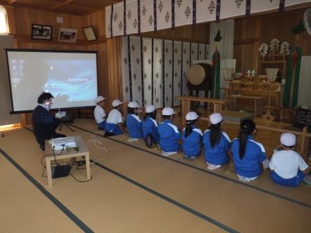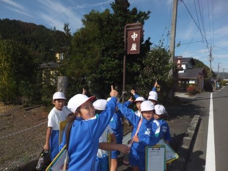 10月26日(木)2年生が町探検で、上小屋地区を訪問しました。神社の宮司さんより、地区の歴史や、神社についてのお話を聞きました。地域の歴史や文化について、学ぶ機会となりました。