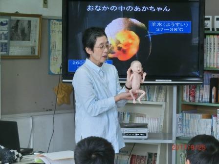 9月25日(月)5年生で「命の授業」を行いました。講師の先生から、命について学習しました。赤ちゃんが産まれるまでや、赤ちゃんとのかかわり方について学び、お母さんの大変さを知り、お母さんへの感謝の気持ちを持つことができました。また、命のつながりについても、自分がかけがえのない存在だと気づくことができたと思います。