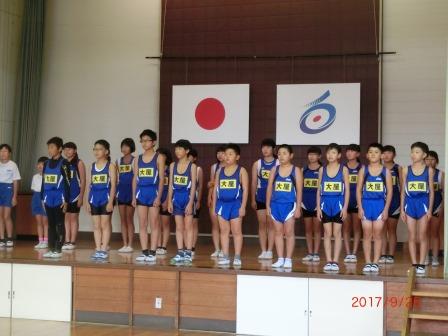 9月25日(月)陸上競技会の壮行会を行いました。出場する5・6年生に対して、4年生が大きな声でエールを送り、立派な応援を披露しました。下級生もそれに合わせて大きな声と手拍子で応援しました。選手代表からは、「自己ベスト目指して頑張ります」と元気な挨拶がありました。