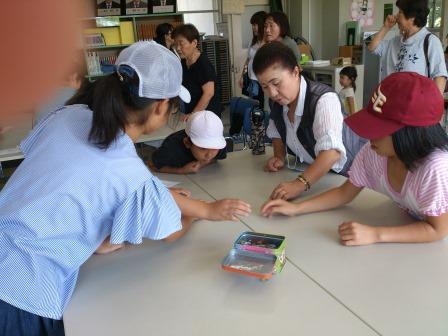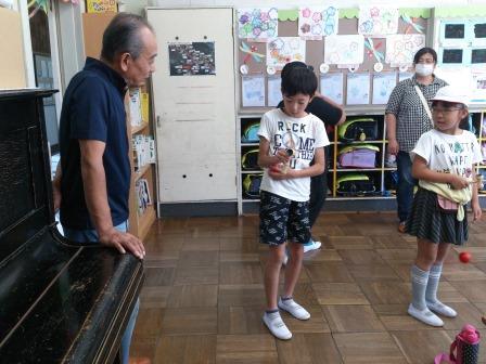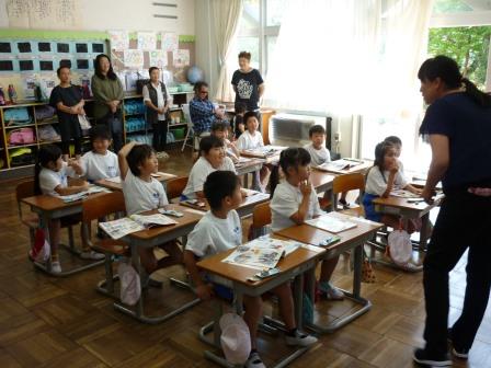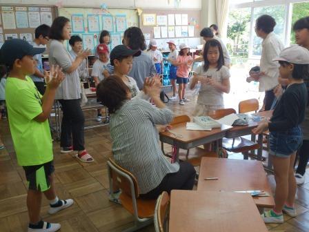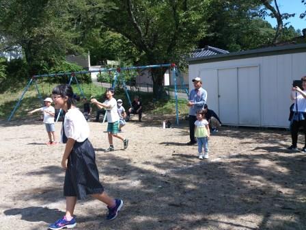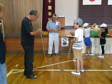9月9日(土)土曜授業で、祖父母参観・ふれあいの会を行いました。多くの祖父母や保護者の皆様においで頂き、子ども達の授業の様子を参観してもらいました。その後、昔遊び(けん玉、おはじき、あやとり、こま、ビー玉、羽根つき、竹トンボ、石けり)をおじいちゃんやおばあちゃんに教えてもらいながら、一生懸命取り組んでいました。普段室内でのパソコンなどのゲームが多い中、昔の遊びの楽しさに触れ、目を輝かせて取り組んでいました。