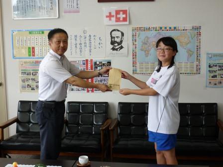 9月14日(木)午後1時より、信夫一小にて、赤十字社に代表児童が義援金を手渡しました。熊本地震の義援金を生活集会委員会が呼びかけたところ、10,337円が集まりました。子ども達の気持ちも一緒に受け取ってくれたと思います。