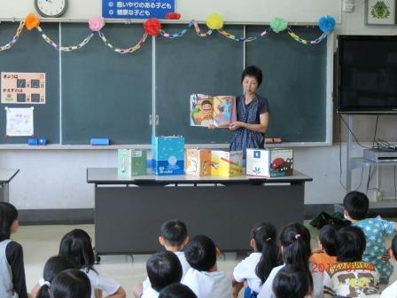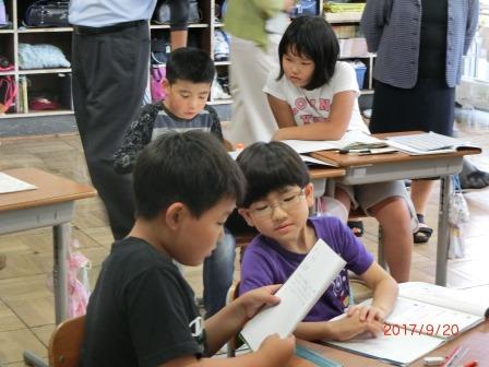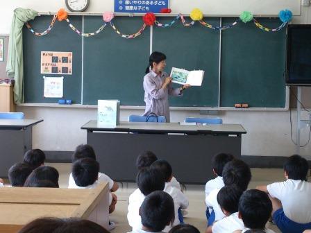 本日「しらかわ語りの会」の方がおいでになり、1~3年生と5~6年生に分けて読み聞かせや、本の紹介をしてくださいました。子ども達は、真剣にお話に聞き入っていました。また、休み時間には図書室に行き、友達に読み聞かせをする児童もいて、語りの会の方も驚いていました。読み聞かせや読書は、子ども達に想像力を育み、また人の温かさが伝わるのをあらためて感じました。秋の夜長、ぜひ家庭でも読み聞かせや親子読書はいかがでしょうか。