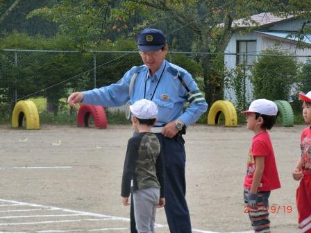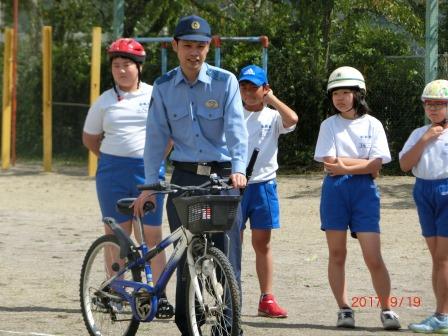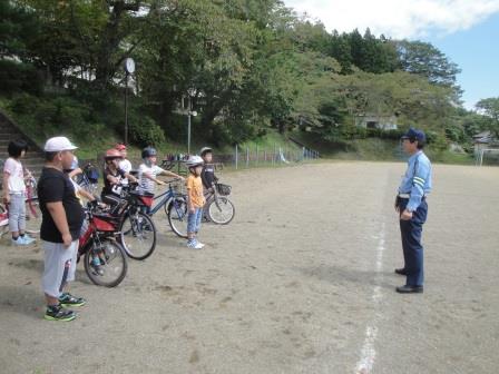 9月19日(火)交通教室が行われました。白河警察署交通課の警察官が2名来てくださり、子ども達に自転車の安全な乗り方や、交差点での右折や左折、横断の仕方などについて教えていただきました。秋の全国交通安全運動が始まりますが、交通事故に遭わないよう注意して安全に自転車に乗ってほしいと思います。
