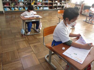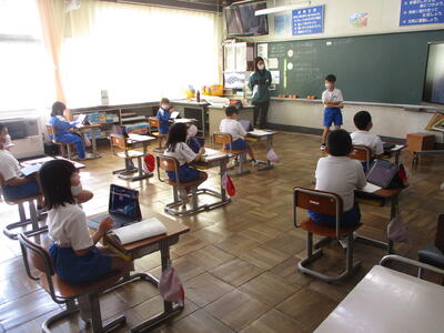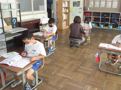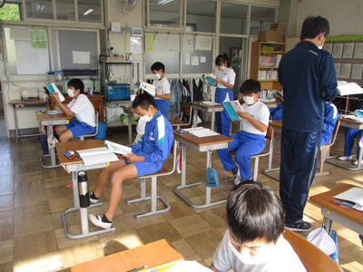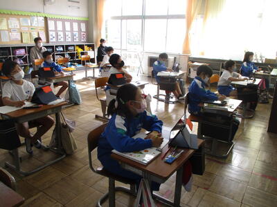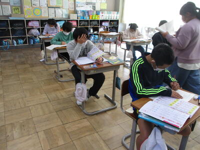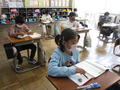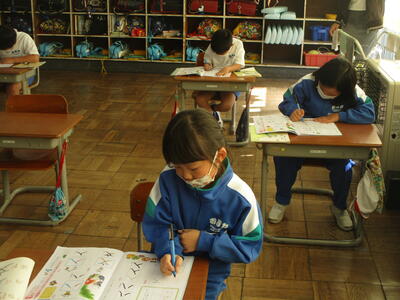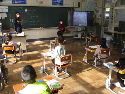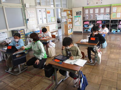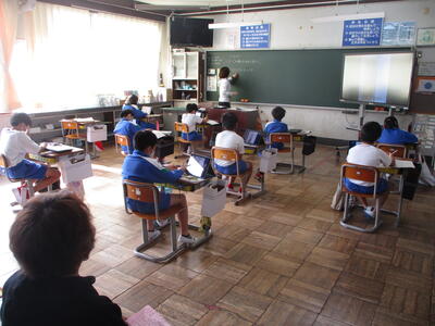 保護者や祖父母のみなさんには、業間から4校時までの子どもたちの様子を見ていただきました。