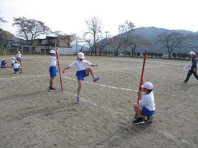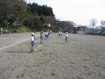 そして、こちらが笑いながら「よ~し、〇〇さんには負けないぞ~!」と、いうと、子どもたちのスピードが上がります。