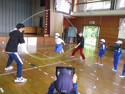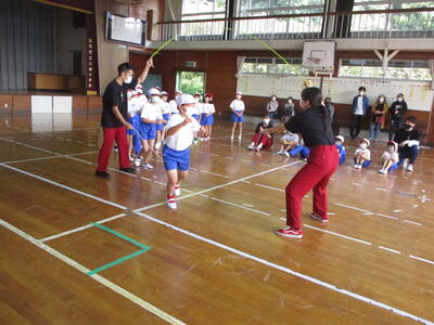 また、今日は、参観日にあわせてダブルダッチ教室を開催しました。