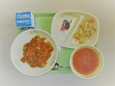 ※市内の他校のホームページでも今日の給食が紹介されていますが、すべて同じような写真になっています。